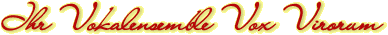 Und schließlich 2008 das Konzert in Bad Sooden-Allendorf mit den Freunden aus Renshausen. Auch wenn wir aufgrund der immer knapper werdenden Zeit leider in diesem Jahr einige Engagements absagen musste, hatten wir auf jeden Fall Spaß. Und wir machen mal wieder was neues, z.B. Doo Wop- und Country-Songs ;-) Apropos, wenn Sie darüber nachgedacht haben, was Vox Virorum eigentlich bedeutet: Frei aus dem Lateinischen heißt es „Stimme der Männer“, also kurz „Männerstimmen“. Bedingt durch einen beruflich veranlassten Ortswechsel war es unserem langjährigen musikalischen Leiter Jens Gerlach ab 2011nicht mehr möglich an den Proben und Auftritten teilzunehmen. Nachdem die musikalische Leitung für 5 1/2 Jahre von Christiana Diedrich weitergeführt wurde, liegt sie jetzt bei Christopher Wagner. |